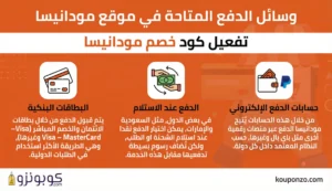حسابات الدفع الإلكتروني: من خلال هذه الحسابات يُتيح مودانيسا الدفع عبر منصات رقمية أخرى مثل باي بال وغيرها، حسب النظام المعتمد داخل كل دولة.