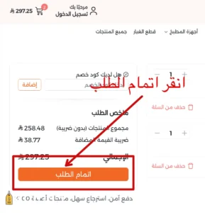 - بعدها اضغطي زر إتمام الطلب للانتقال لخطوة إنهاء الطلب ويمكنك تفعيل كوبون ريبون من نفس الصفحة.